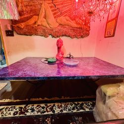 VTG MCM Blue & Black Marmica (Marble & Formica Fusion) Wrought Iron Dining Table$50Portland, OR