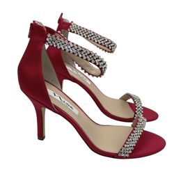 Nina Vauna satin embellished ankle strap red evening heels womenβs Size 8M$55Vancouver, WA