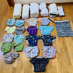 HUGE SET 101 Pieces : Cloth Pocket or All in One Diapers, Inserts, and SKIP HOP Wet or Dry Diaper Bag,$185Washington County, OR