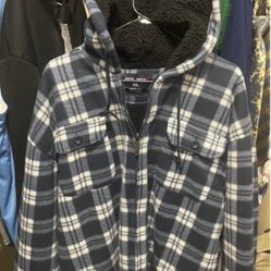 New Men’s XXL Blue Plaid Warm Outerwear Zip Up Hoodie Coat Half Price $20Tualatin, OR