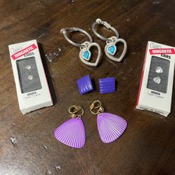 Vintage 5 Pairs of Clip-On & Magnetic Earrings Purple Emerald Silver Hearts & Cubic Zirconia Studs$10Portland, OR