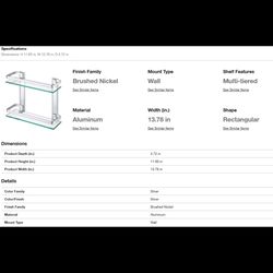 14" W x 5" D x 12" H Silver Wall Mount 2-Tier Bathroom Glass Floating Shelf$20Macungie, PA