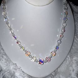 Vintage Sterling & Aurora Borealis Faceted Glass Bead Necklace, 22" $100Chalfont, PA