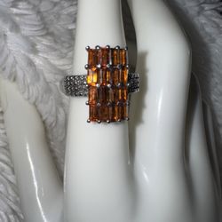 Vintage 925 Lab Created Orange Sapphire Cluster Ring with Side Marcasites, sz 7 $125Chalfont, PA
