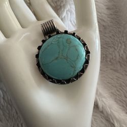 Vintage Heavy Turquoise & Mexico 925 Large Pendant w/Large Bail $130Chalfont, PA