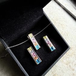 Women’s jewelry set in 925 sterling silver multi color gemstone necklace and earrings new. $50Freemansburg, PA