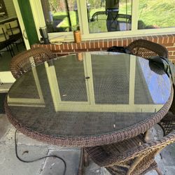 Large 5-piece wicker table set with four chairs (glass top, cover, and custom table clothes included)$300Penn Hills, PA