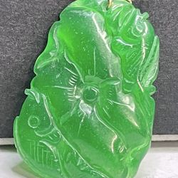Carved Imeperial Green Jade Blossom Fish Pendant$450Curwensville, PA