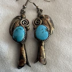 Vintage Heavy Turquoise & Mexico 925 Large Pendant w/Large Bail $130Chalfont, PA