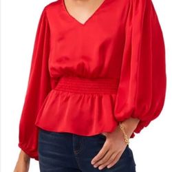 Vince Camuto Smocked Peplum Red Blouse$28Upper Gwynedd, PA