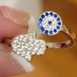 brand new 925 sterling silver Evil eye blue eye hamsa hand ring open size $20Whitehall, PA