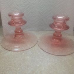 Vintage Pink Depression Glass Tapered Candlestick Holders $50Allentown, PA