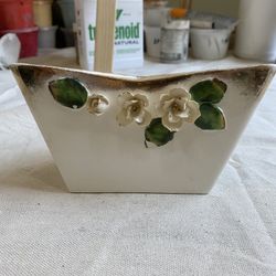 Vintage Studio Art triangle corner vase white gold leaf sculpted flowers$35Stroudsburg, PA