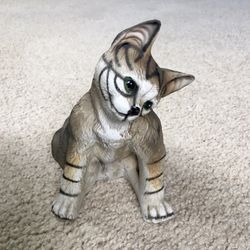 Vintage Striped Brown and White Cat With Head Tilted Ceramic Figurine 6.5” High$15Williams Township, PA