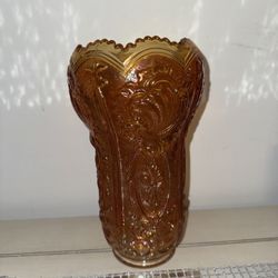 Vintage Imperial Marigold Carnival Glass Vase Embossed Scroll & Floral "Shell" 10" $120Chalfont, PA