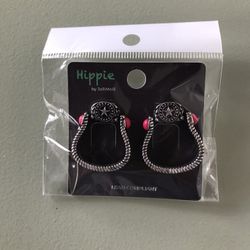 Western Saddle Stirrup Pierced Earrings Pink Stone New $4Columbia, NJ