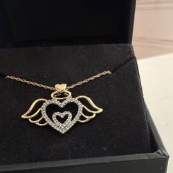 Zales Diamond 10k yellow Gold heart With angel Wings and halo Pendant necklace Never worn comes with box Beautiful necklace perfect for yr loved on$250Freemansburg, PA