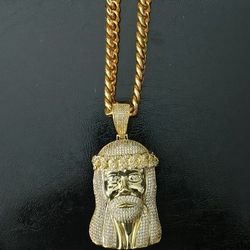 High Quality Stainless Steel Gold Cuban Link Chain With Jesus Pendant $160Whitehall, PA