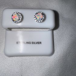 New Sterling Moissanite & Fire Opal Stud Earrings 7mm $55Chalfont, PA