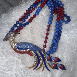 J. Crew Signed Blue & Red Beaded, Enamel & Rhinestone Peacock Necklace, MRSP $175$90Chalfont, PA