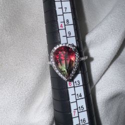 NEW Pear Shaped Sterling Moissanite & Watermelon Tourmaline Ring, size 5 $120Chalfont, PA
