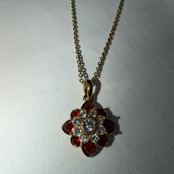 VINTAGE 1990’S JOAN RIVERS 19” GOLDTONE NECKLACE W/ RED STONE & RHINESTONE PENDANT $25Jamison, PA