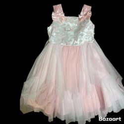 Girls sz 6 pink & white satin & chiffon Floral party dress Jona Michelle$8Allentown, PA