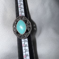 Vintage Large Turquoise Marcasite Sterling Silver Ring, size 7$80New Britain, PA