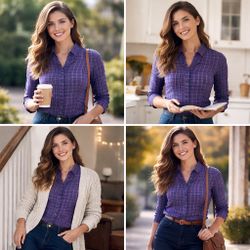 Gap Blue Pink Plaid Fitted Boyfriend Shirt Ruffle Button Up Small$15Erie, PA