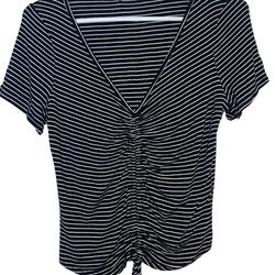 Jones New York Sport XL Striped Blouse Roll Tab Sleeve Black White Casual Top$15Erie, PA