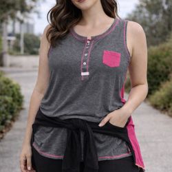 Kensie XL Sleeveless Henley Tank Top Gray Pink Casual Top$15Erie, PA
