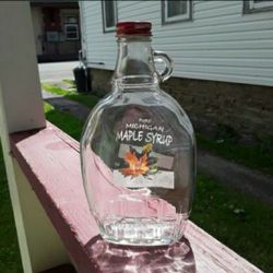 🍁Vintage Pure MICHIGAN MAPLE SYRUP Clear Glass BOTTLE from MORLEY MICHIGAN with ORIGINAL CAP🍁$8Franklin, PA