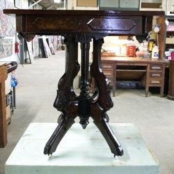Ornate carved wood Antique Eastlake Victorian side table on ceramic wheels - 100% restored - now available$750Latrobe, PA