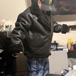 This is a Mens XL black shearling sheepskin B-3 bomber jacket. $150Plum, PA
