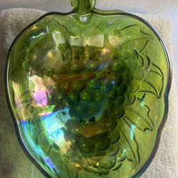 Vintage Indiana Iridescent Greenish Bluish Grape Embossed Carnival Glass Bowl$10Latrobe, PA