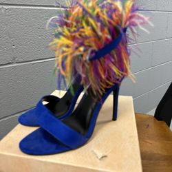 Women’s Royal Blue Heels With Multi Colored Feathers Size 7$35Reading, PA