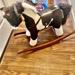 Rocking Horse Plush Animal on Wooden Rockers with Sounds, Brown$10New Salem Bro, PA