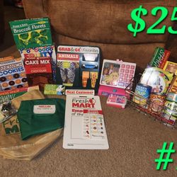 Two chairs, table, wheelbarrow and plates of food for 18 in dolls$25Lititz, PA