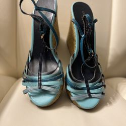 Dolce Gabbana Lightly Used Patent Floral Stitching Tie Up Wedge Heel Mules/ Slides$130Lancaster, PA
