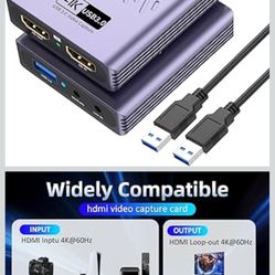 4K HDMI Video Capture Card for Nintendo Switch 2, PS5, Xbox, PC,Streaming- USB 3.0 Game Capture Device with 2K 30fps, Compatible with Broadcasting, Mo$12Cherry Hill, NJ