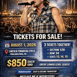 Morgan Wallen concert tickets Philadelphia August 1$750Philadelphia, PA