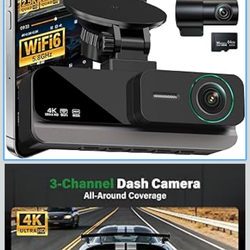 4K+2.5K+2.5K 3 Channel Dash Cam - Front/Rear/Inside - 5.8GHz WiFi 6 Dashcam with IR Night Vision, 64GB Card, 24H Parking Mode, G-Sensor - Car Dash Cam$55Cherry Hill, NJ