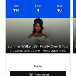 Summer walker ticket$250Philadelphia, PA