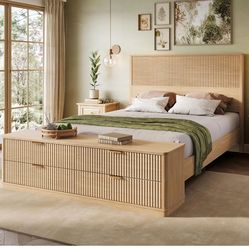 LINSY Storage Bed Frame Queen Bedframe with Drawers, Tall Bed Frame Queen-Size with Headboard and Footboard Bench, Fluted Boho Bed Frames Wooden Platf$250Gloucstr City, NJ