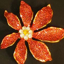 Vtg Poinsettia Red Glitter and Rhinestone 2.5 Brooch Pin $10Drexel Hill, PA