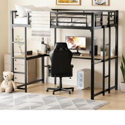 KMBOHE Full Size Loft Bed with Desk and Shelves, Metal Loft Bed with Ladder and Guardrails, Loft Bed Frame for Bedroom, Black$100Camden, NJ