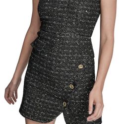 BCBG Womens Sleeveless Jewel Neck Button Split Detail Tweed Mini Dress Color: Black Multi Size: 12 Fabric type 100% Polyester Care instructions Dry$155Philadelphia, PA