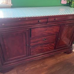 dresser top with integrated shelves and decorative carved wood details$40Stanton, DE