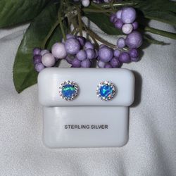 NEW 925 Sterling Silver Blue Opal Stud Earrings with Cubic Zirconia Halo $49Chalfont, PA