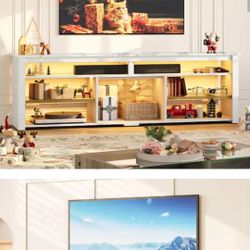 Bestier 70" TV Stand for 75" TV with LED Light Modern Tall Entertainment Center with Shelves for PS5, White Marble$110Camden, NJ